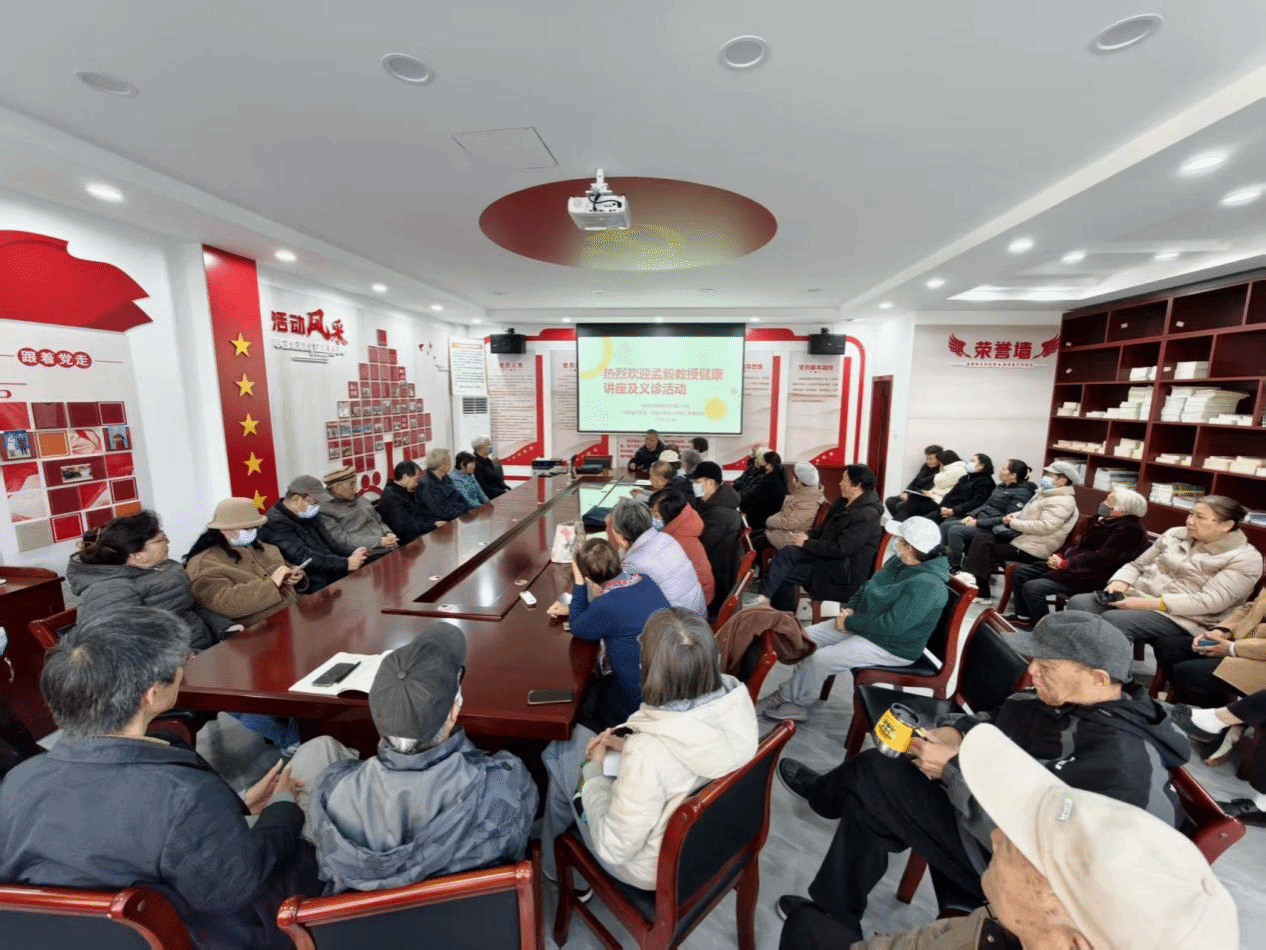 活动伊始,老干部工作处处长尚军利主持并致开场词。孟毅教授以《黄帝内经之中医养生观》为题,聚焦国人健康现状,从养生概论、中医养生思想体系及具体方法等维度展开分享,重点针对离退休老同志的身心特点,围绕精神、饮食、起居、运动、药物五大养生方向,援引历代中医名家理论,结合自身数十年临床经验进行深入浅出的讲解,让在场老同志收获颇丰。讲座互动环节,孟教授耐心解答了大家提出的各类健康问题;讲座结束后,他还为有需要的老同志开展了现场义诊。
