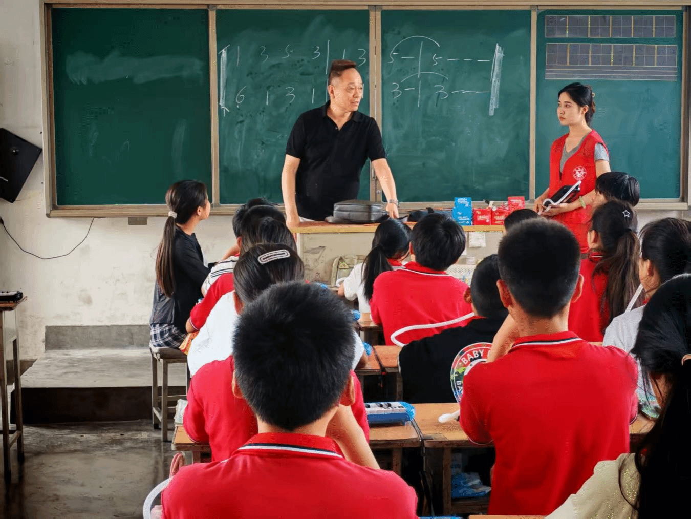 慰问团队一行先后前往巩义市涉村镇中心小学与鲁庄镇北侯小学,实地考察了支教志愿者的工作与生活环境,与学校负责人及志愿者进行了深入的座谈交流,详细了解他们的工作进展、学习收获及生活状况,传递了学校的温暖与支持。在巩义市鲁庄镇北侯小学,校关工委副秘书长、教授曹国强亲自走上讲台,为乡村小学生们带来了一堂别开生面的音乐课。曹教授以其深厚的音乐底蕴和丰富的教学经验,将音乐的美妙与力量传递给了每一个孩子,激发了他们对音乐艺术的浓厚兴趣与热爱。
